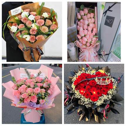 湖北武汉市洪山江夏黄陂新洲区鲜花店同城配送女神节玫瑰花束礼盒