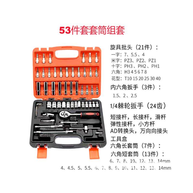 52件汽车修理工具套装24齿小飞快速棘轮扳手加硬套筒套装汽车修理