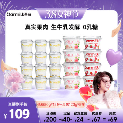 【曹颖甄选】Oarmilk吾岛酸奶草莓蜜桃低糖0乳糖低温酸奶120g