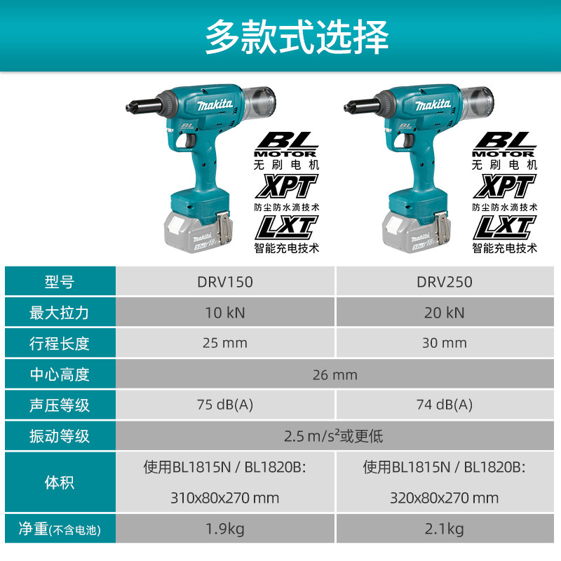 牧田抽芯拉铆枪DRV250铆钉枪充电原装进口DRV150铆接18V锂电工具