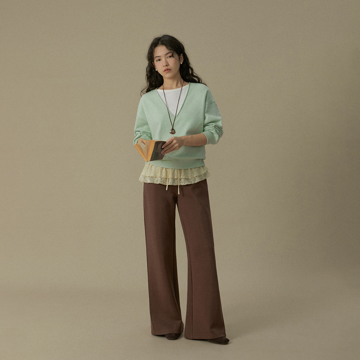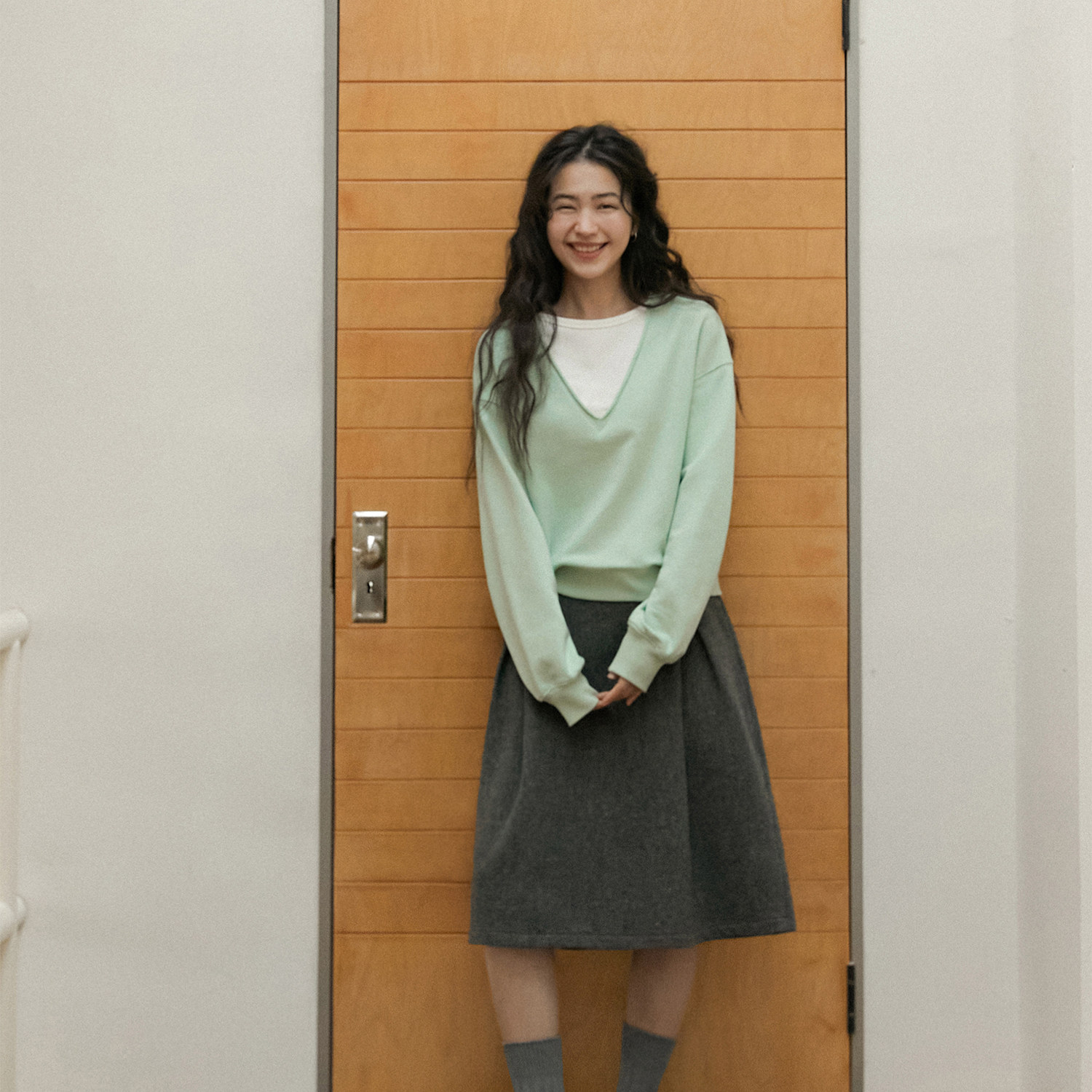LLANO假两件V领卫衣棉质复古美式学院风运动休闲学生外套女秋冬季