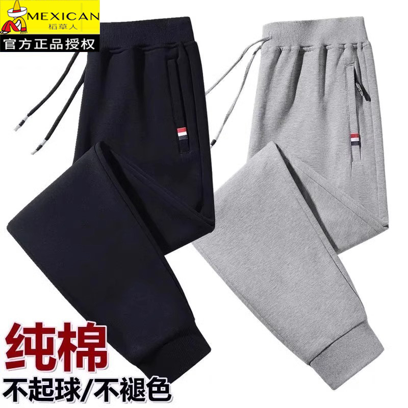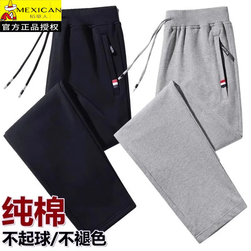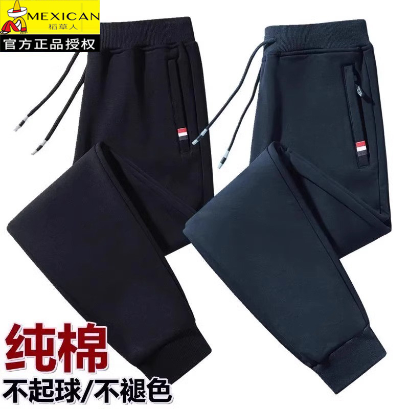 稻草人纯棉裤男士2025新款秋季宽松黑色休闲束脚裤直筒运动卫裤男