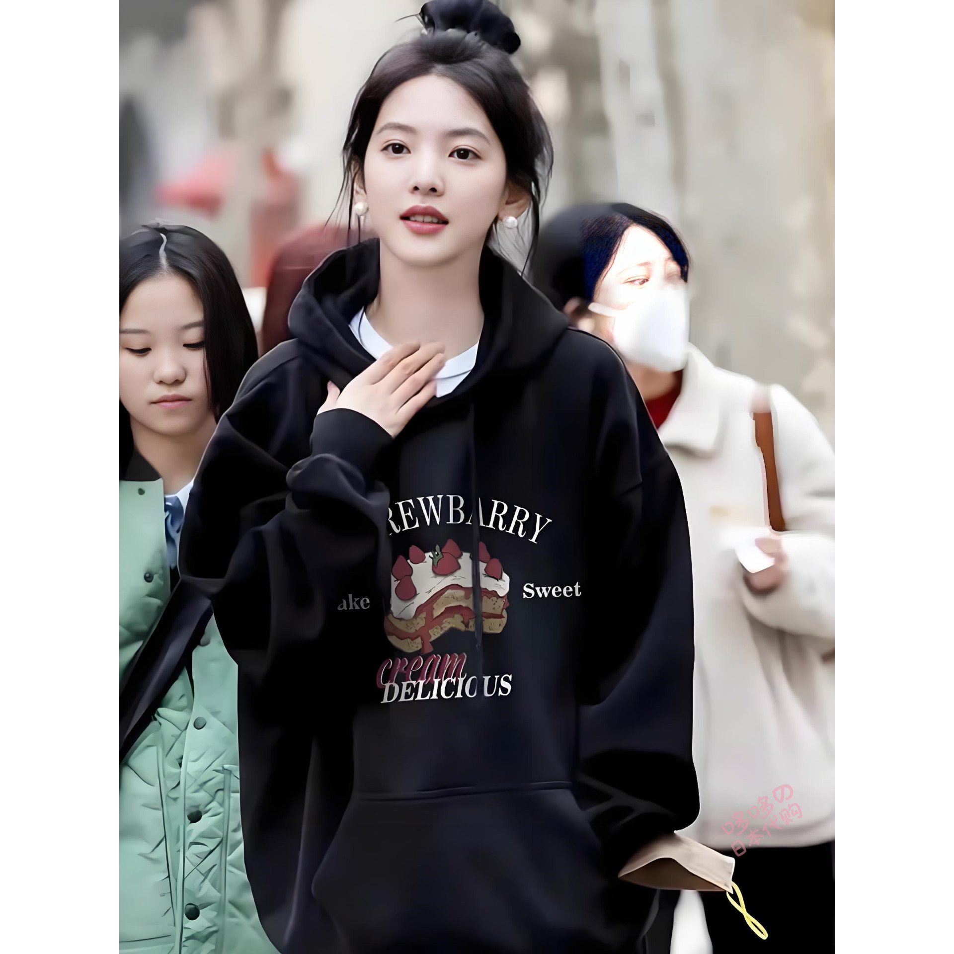 日本代购潮牌王玉雯同款灰色连帽卫衣女士26春秋新款慵懒风上衣服