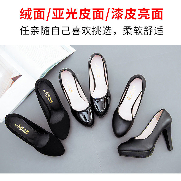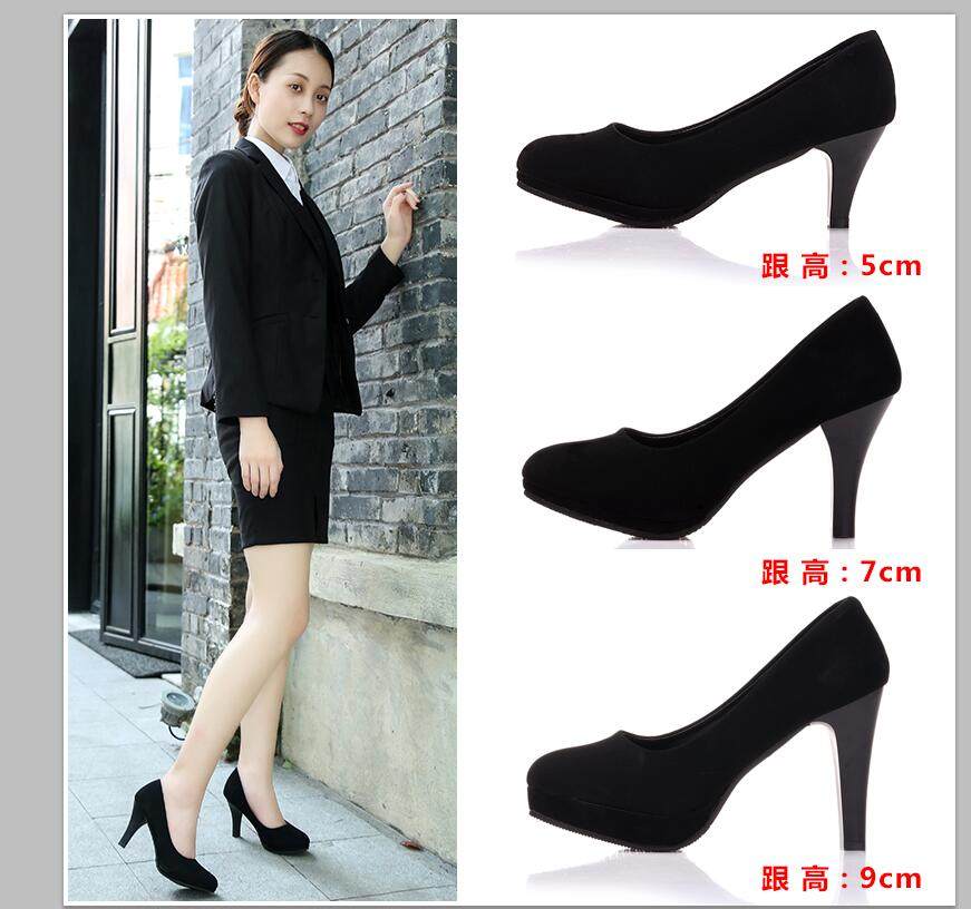 舒适学生正装礼仪职业单鞋空姐软绒面高跟鞋中跟黑色面试工作鞋女
