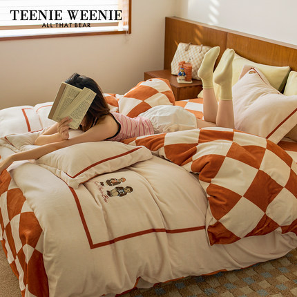 TeenieWeenie冬季保暖牛奶绒床上四件套珊瑚法兰绒面被套床单床笠