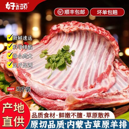 内蒙古羊排非整扇原切5斤羊肋排手把肉现杀全羊排冷冻烧烤羔羊排