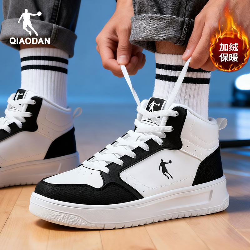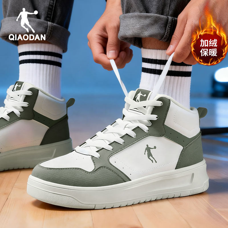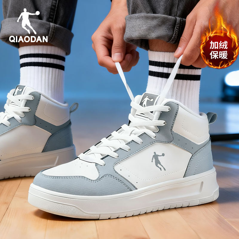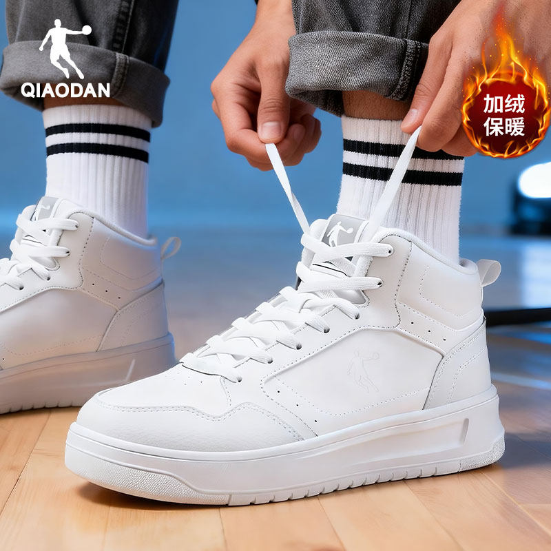 乔丹男鞋休闲板鞋加绒保暖高帮防滑学生厚底鞋合成革运动鞋小白鞋