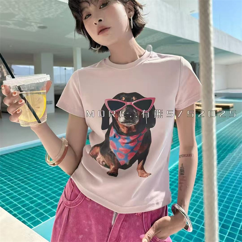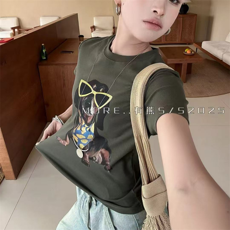 2025夏季新款MORE休闲百搭印花卡通眼睛狗狗短袖T恤修身上衣打底