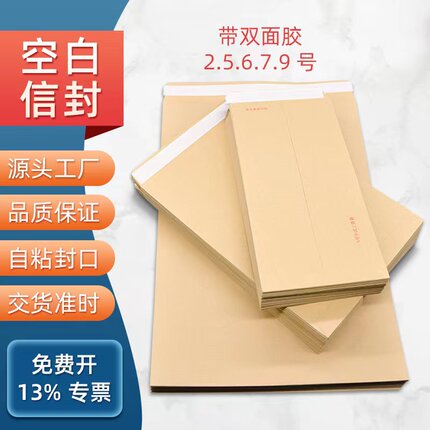 空白牛皮纸中式信封带自粘胶文件票据A4信封袋3/5/6/7/9号 可定制