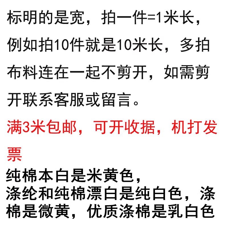 白坯布 涤棉纯棉布料 全棉画布白布胚布服装设计立裁扎染包邮