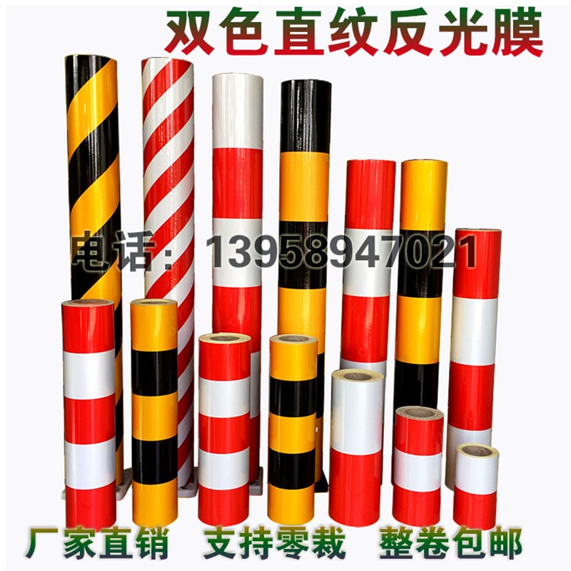 广告级斜纹双色膜黄黑红白反光膜贴纸电线杆警示路桩防撞反光贴条