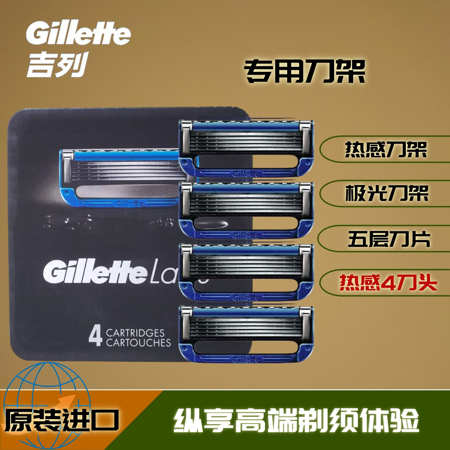 吉列LABS热感原装剃须刀头男手动刮胡刀SPA级进口5层剃须刀片正品