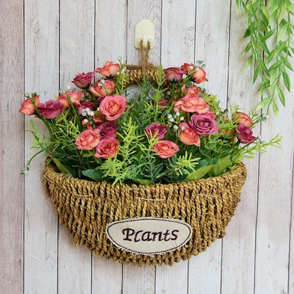 田园草编墙面壁挂装饰花篮藤编仿真干花花篮套装欧式创意手工花盆