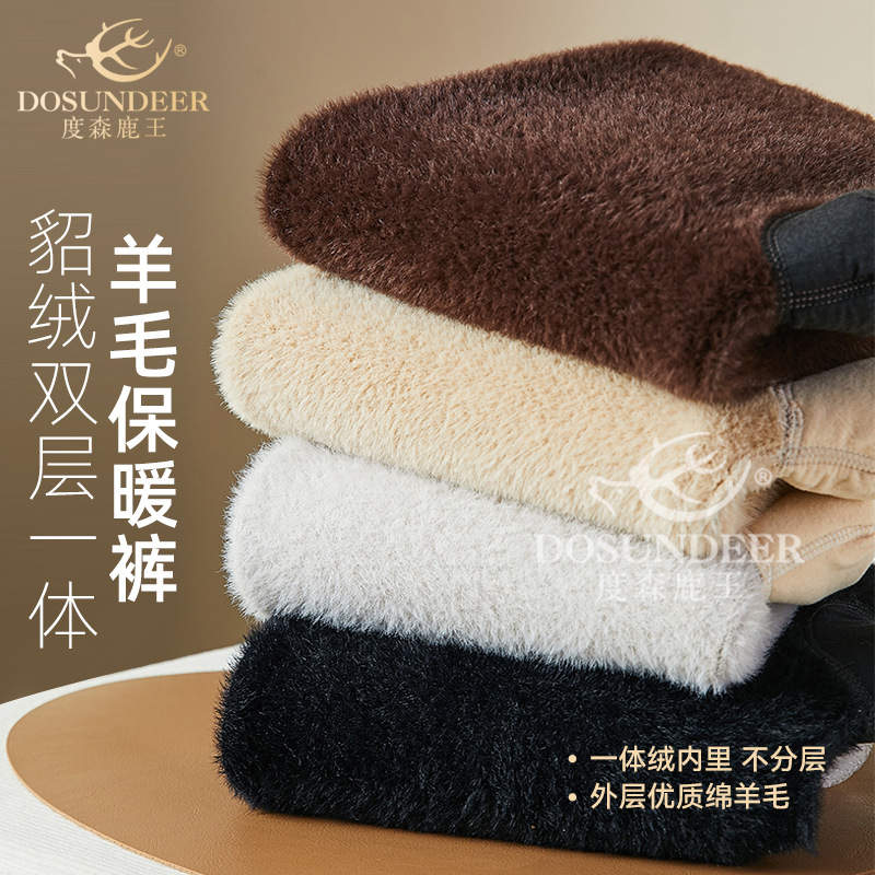 男士加厚绵羊毛裤秋冬大码中老年保暖裤双层针织女士羊绒打底裤