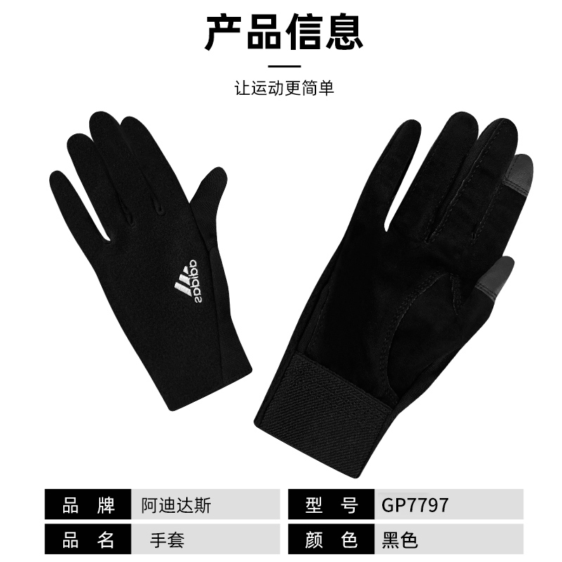 Adidas阿迪达斯手套男女冬季户外运动跑步骑行加绒保暖可触屏手套