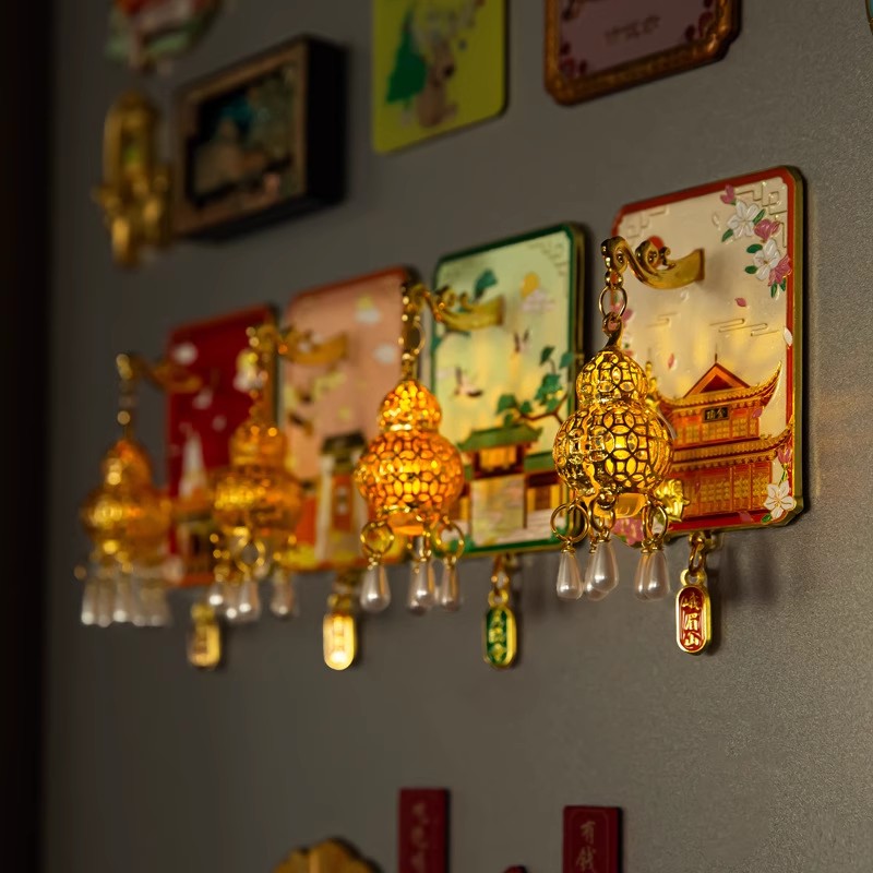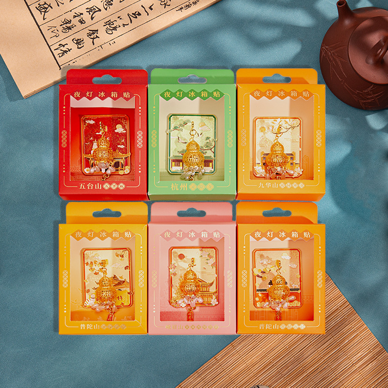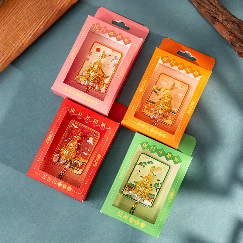 普陀山发光灯笼冰箱贴五台山文创金属磁吸纪念品夜光九华越来越好