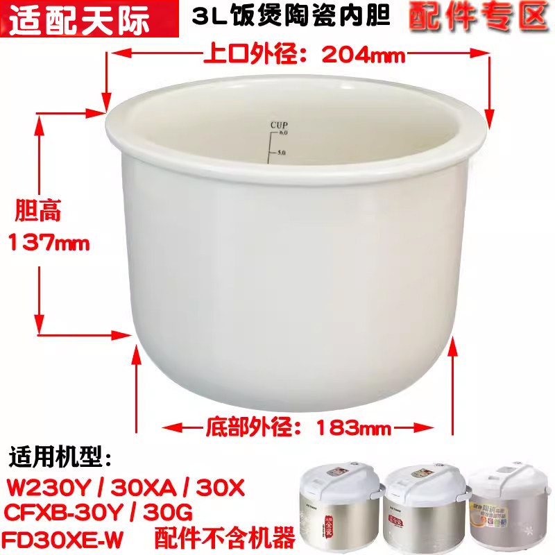 适用天际10Y电饭煲40G/XE-W20G配件30G陶瓷W210Y内胆1L2L3L4L升XA