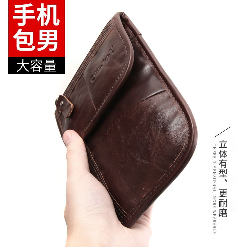 手机包男士2024多功能腰包穿皮带小包包薄真皮竖款单肩背包斜挎潮