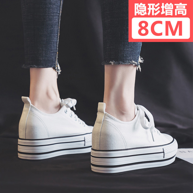 明星同款内增高8厘米帆布鞋女2025春夏季新款潮鞋厚底松糕板鞋子