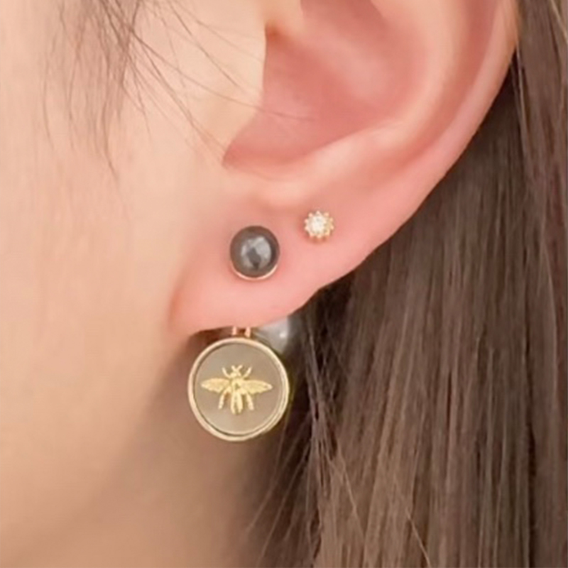 奥米迪奥新款蜜蜂CD不对称耳环女黑色炫彩轻奢高级感贝母耳钉耳饰