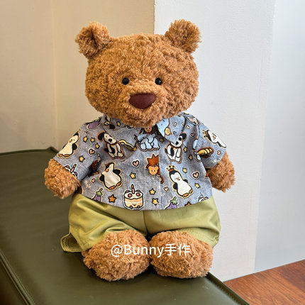 原创手作巴塞罗熊春夏新款衬衣套装黄油小熊可爱公仔定制图案套装