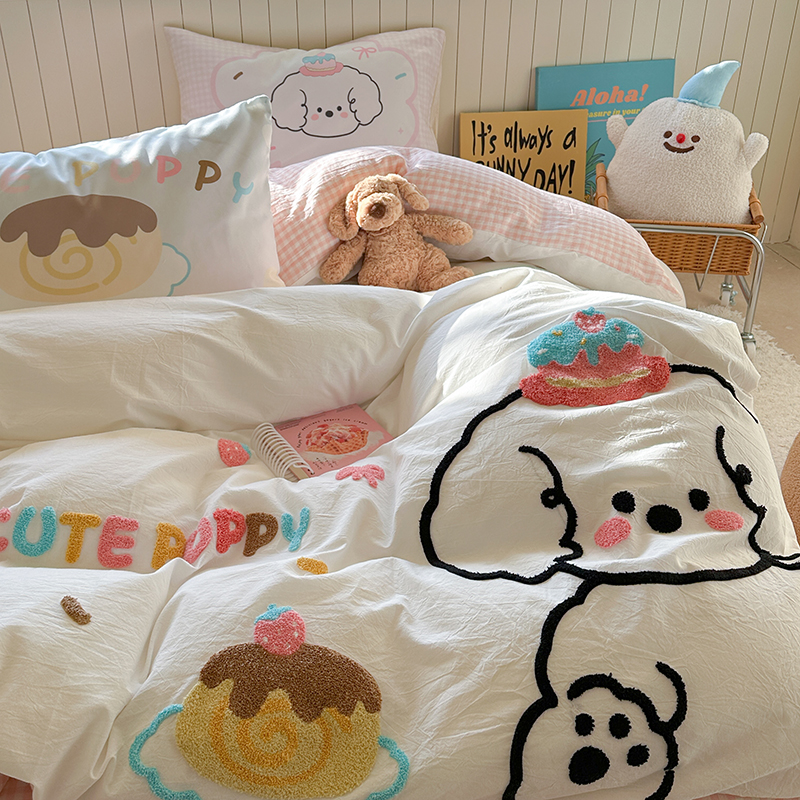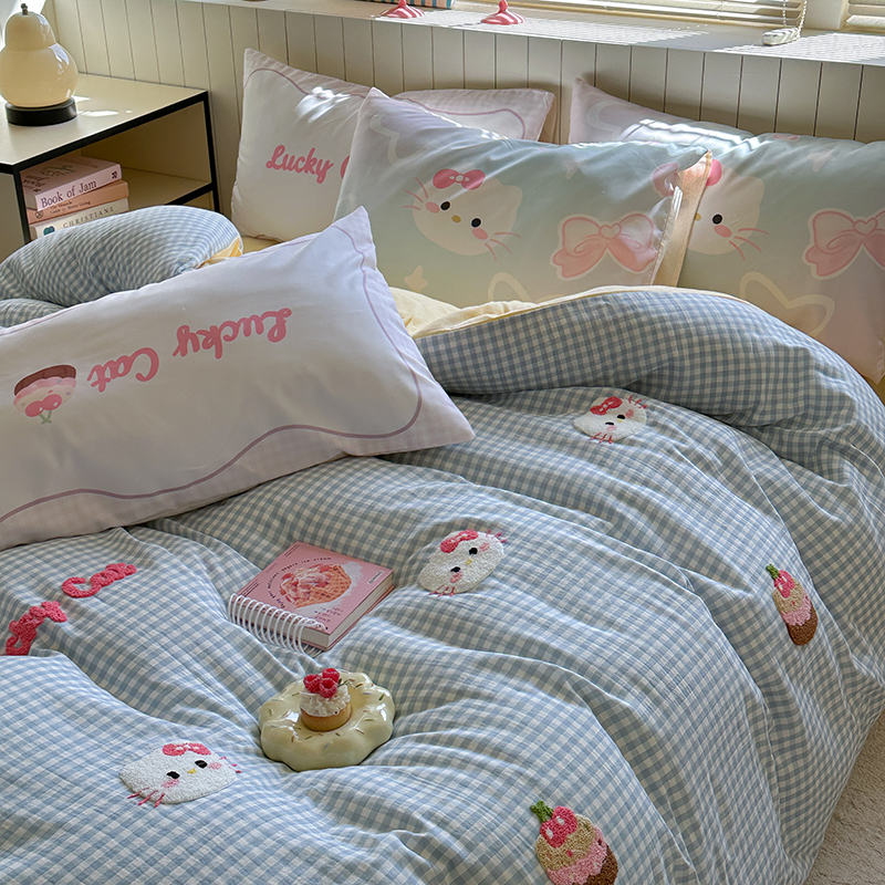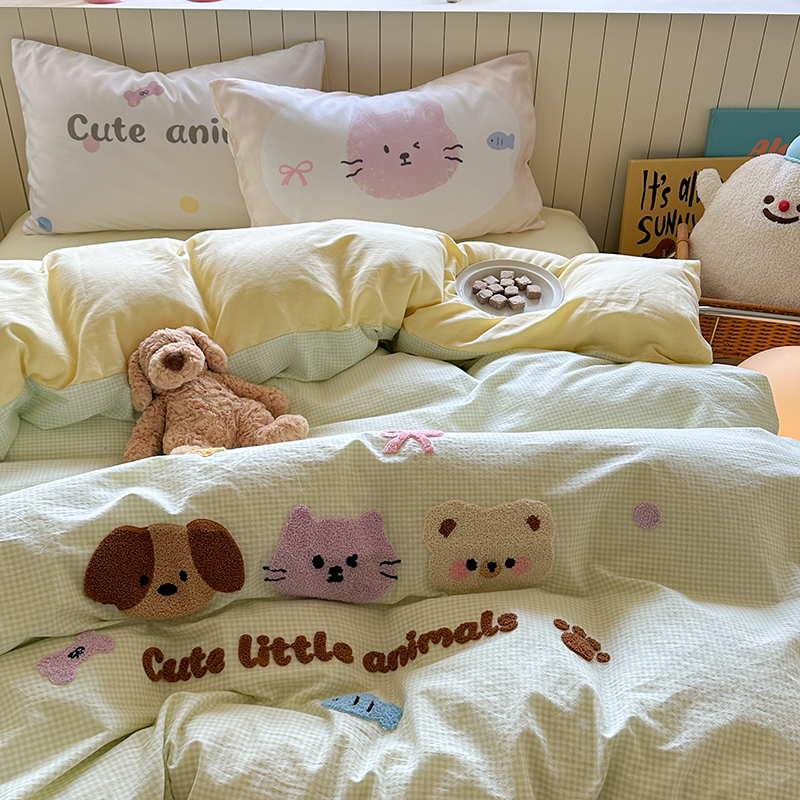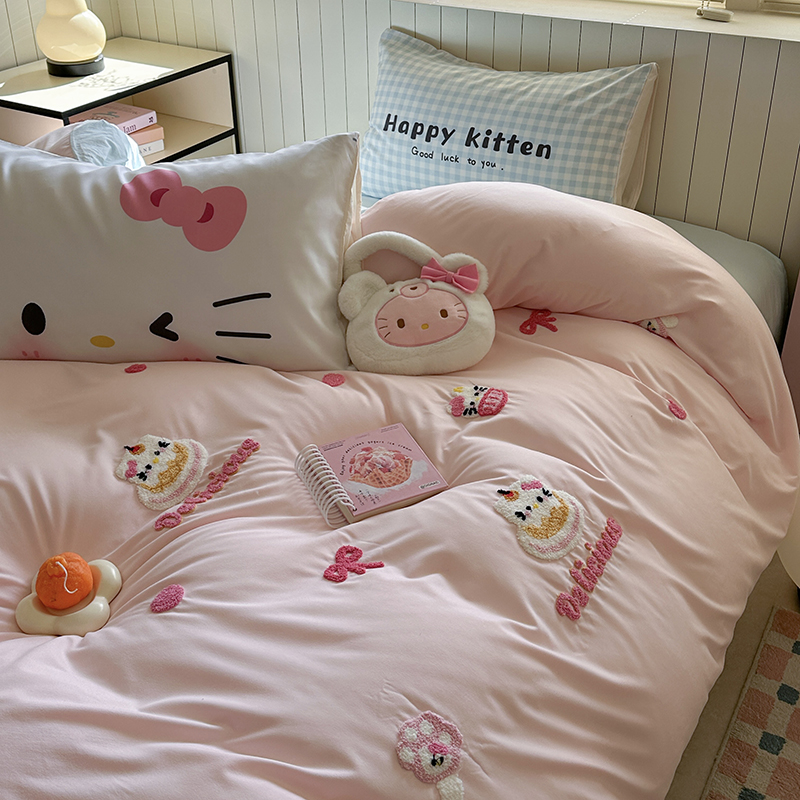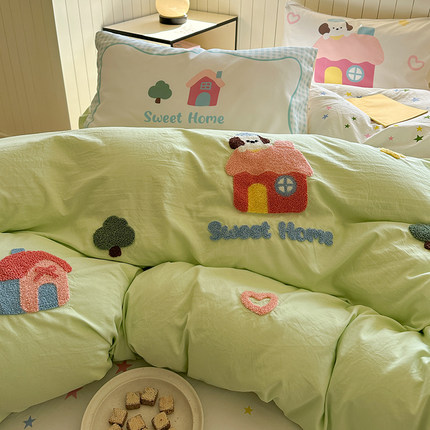月亮睡了童趣小屋卡通毛巾绣水洗四件套宿舍少女床单被套卧室床品
