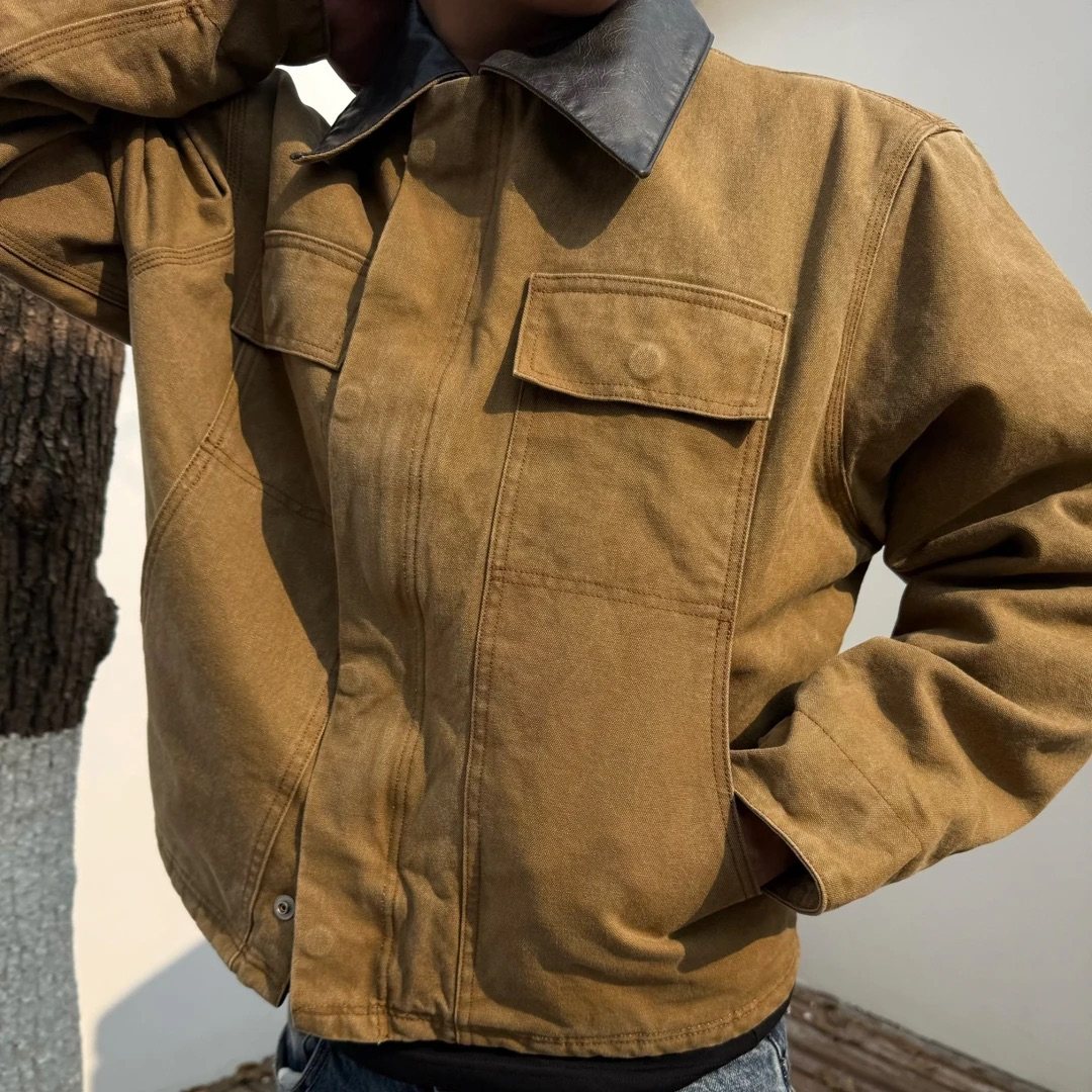 2025WM水洗做旧复古美式底特律男女短款工装夹克翻领外套