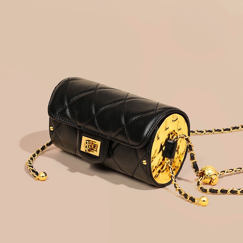 Viney真皮包包女2024新款时尚斜挎包单肩百搭高级感菱格链条包潮
