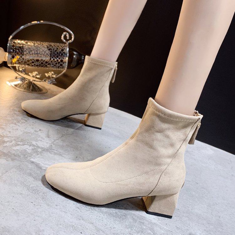 2025新款女鞋秋季瘦瘦女靴小短靴女加绒高跟鞋冬季粗跟马丁靴女潮