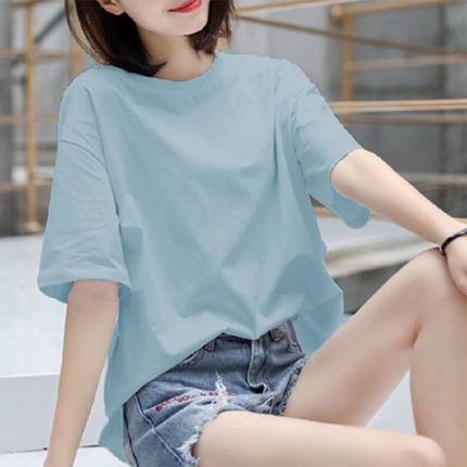 100%纯棉短袖t恤女纯色宽松大码夏半袖上衣服新款体恤韩版打底衫