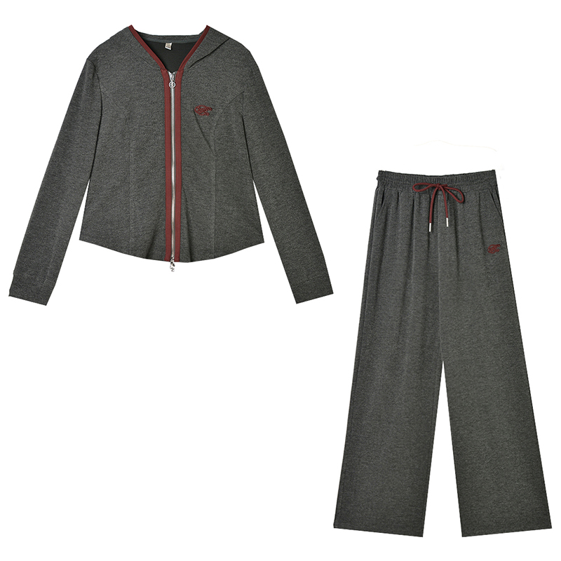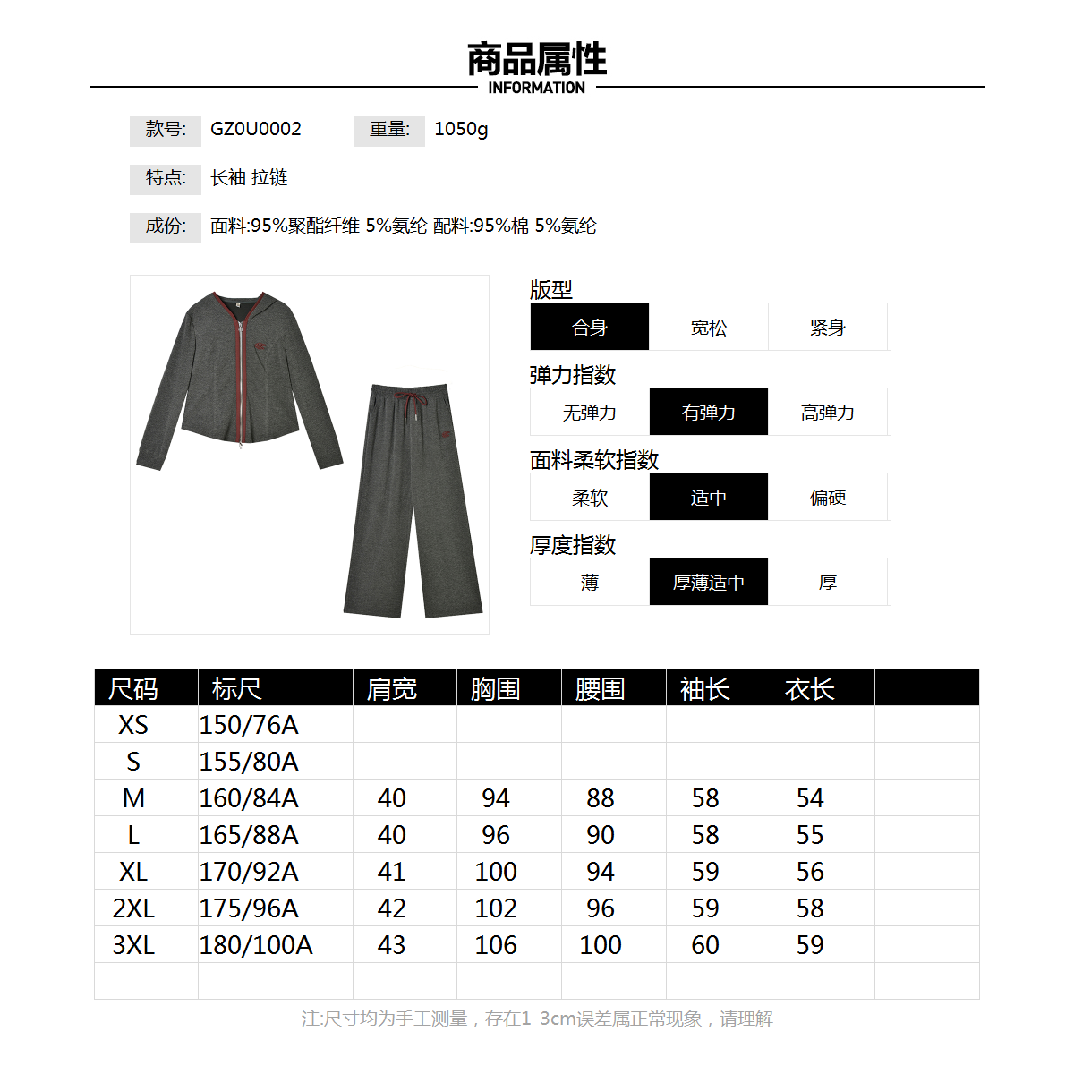 奥特莱斯品牌折扣 GZ秋装新款舒适连帽上衣+松紧腰长裤两件套装女