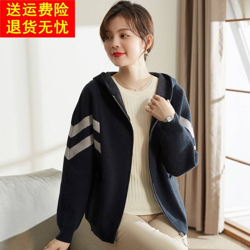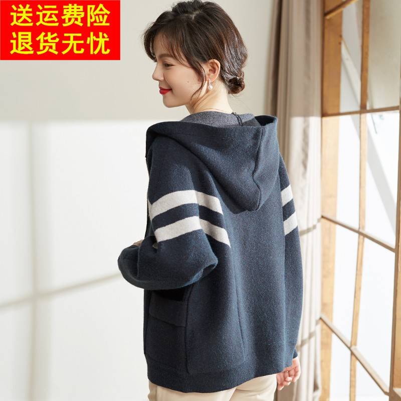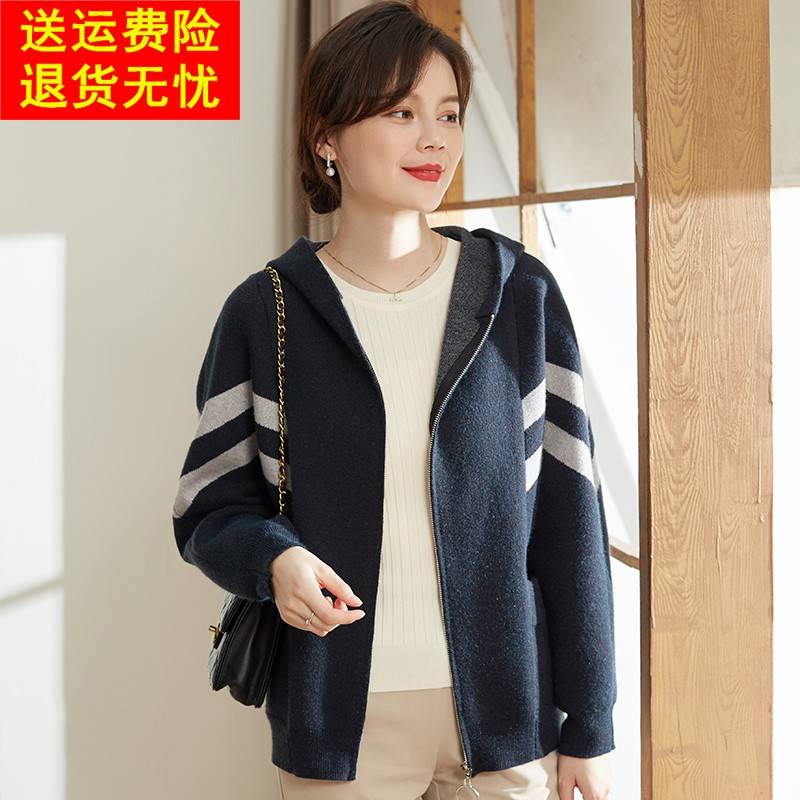 喜卉中老年女装短款外套妈妈秋装针织上衣2025新款洋气连帽夹克衫