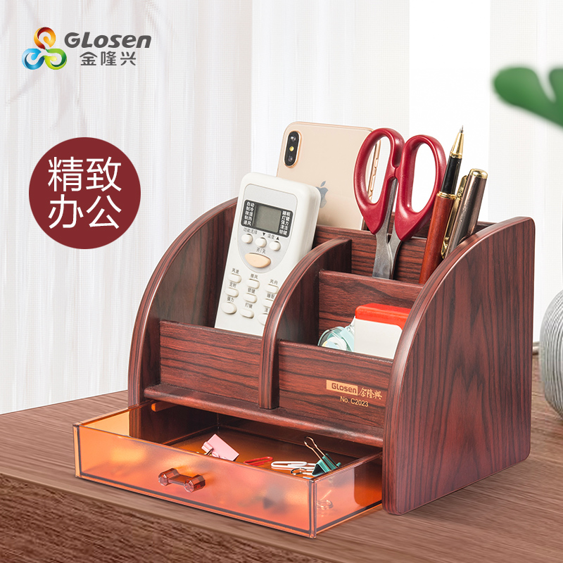 木质笔筒多功能收纳办公室桌面创意学生简约笔盒遥控器抽纸收纳盒