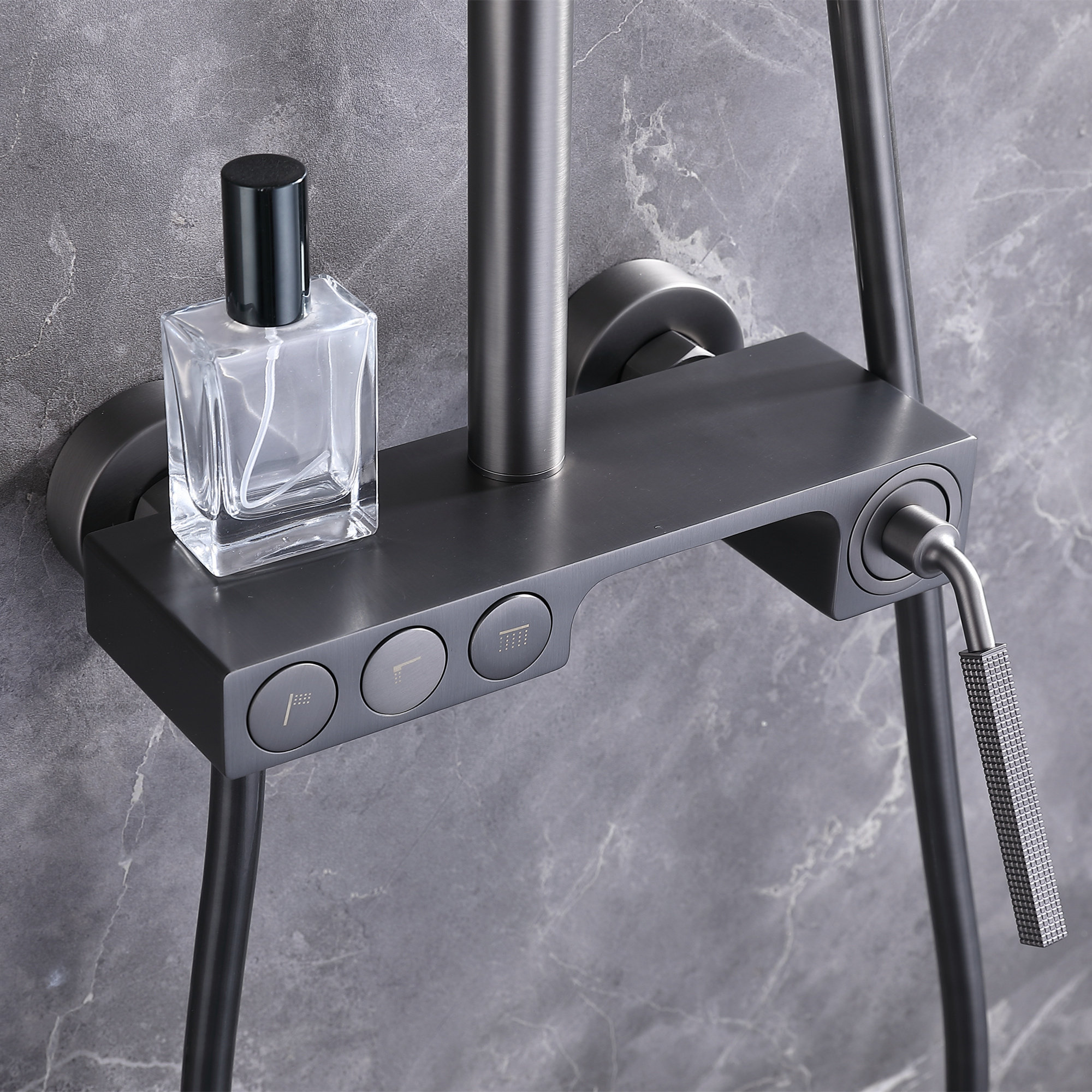 LANCE拉丝枪灰色淋浴花洒套装全铜冷热水龙头星雨喷头