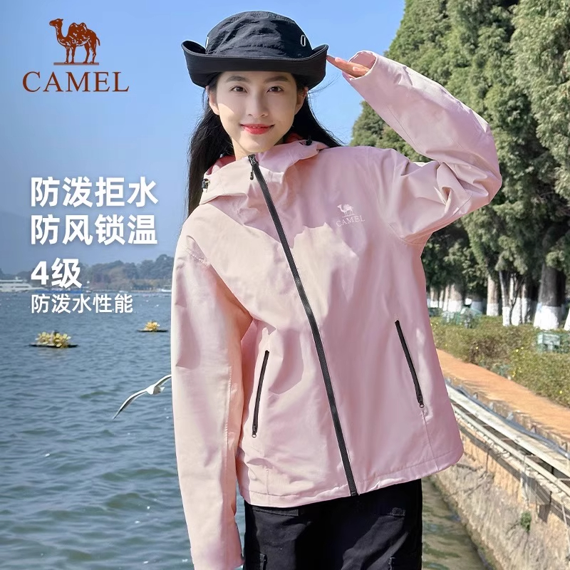 骆驼户外软壳冲锋衣女士2025新款春秋季外套防风连帽夹克运动服男