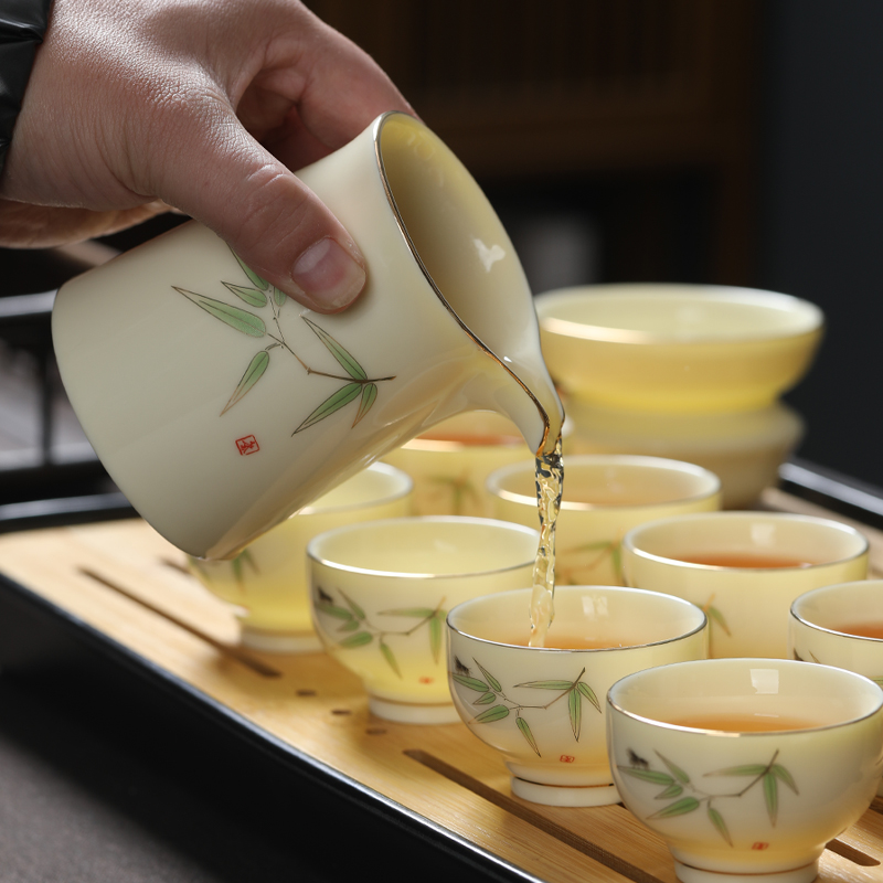 描金宝石黄茶具套装家用功夫茶盘陶瓷茶壶茶杯整套泡茶器送礼盒装