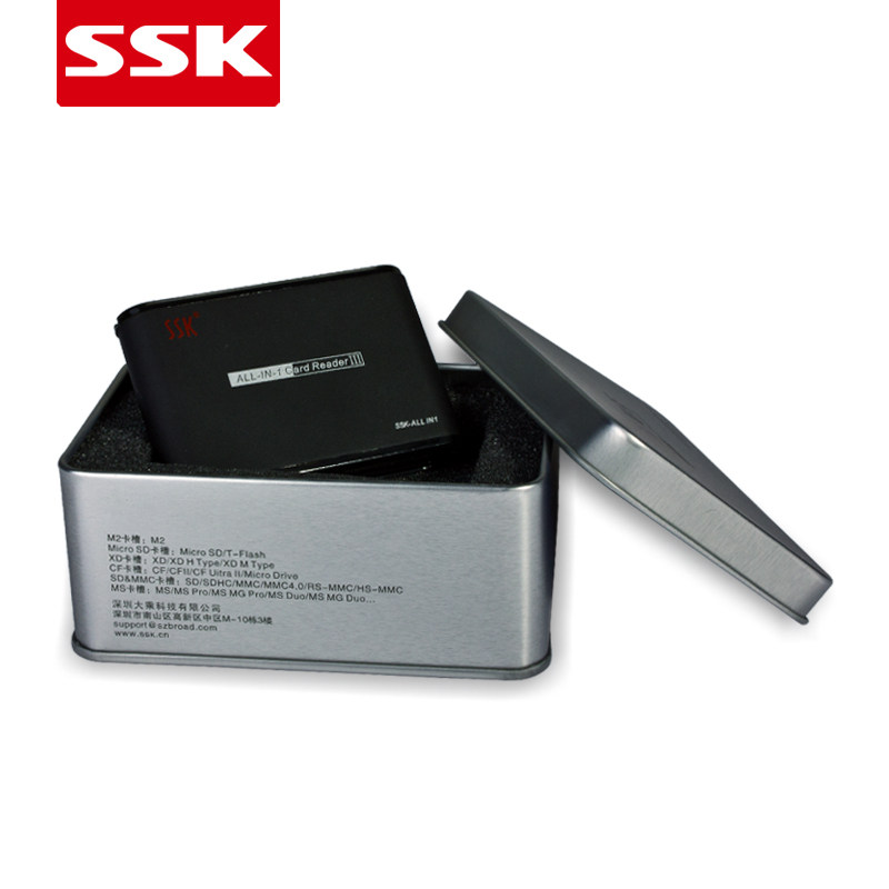 SSK飚王金属读卡器高速多合一 SD大卡MS XD M2 CF 手机TF小卡多功能读卡器通用尼康佳能索尼单反相机SCRM025