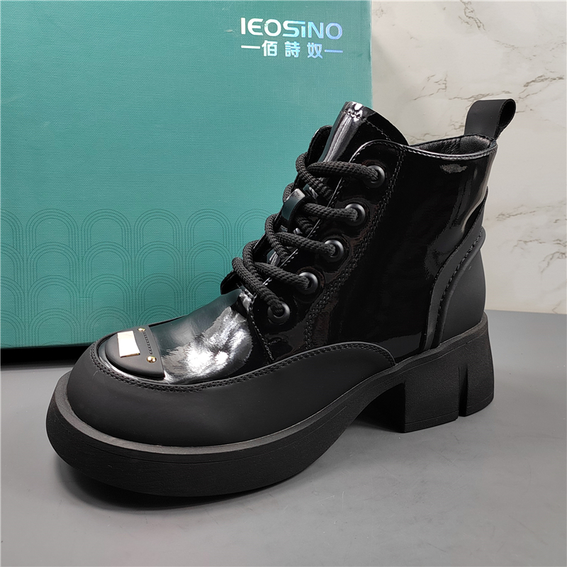 专柜正品真皮厚底马丁靴女2025冬季新款英伦风系带加绒机车短靴潮