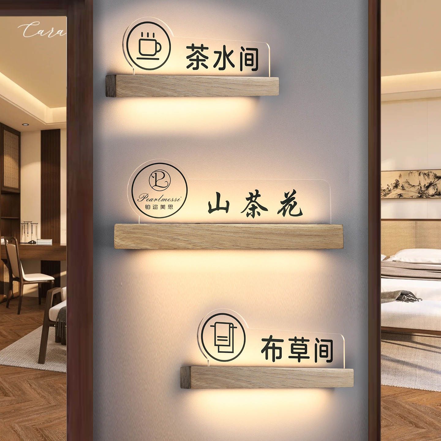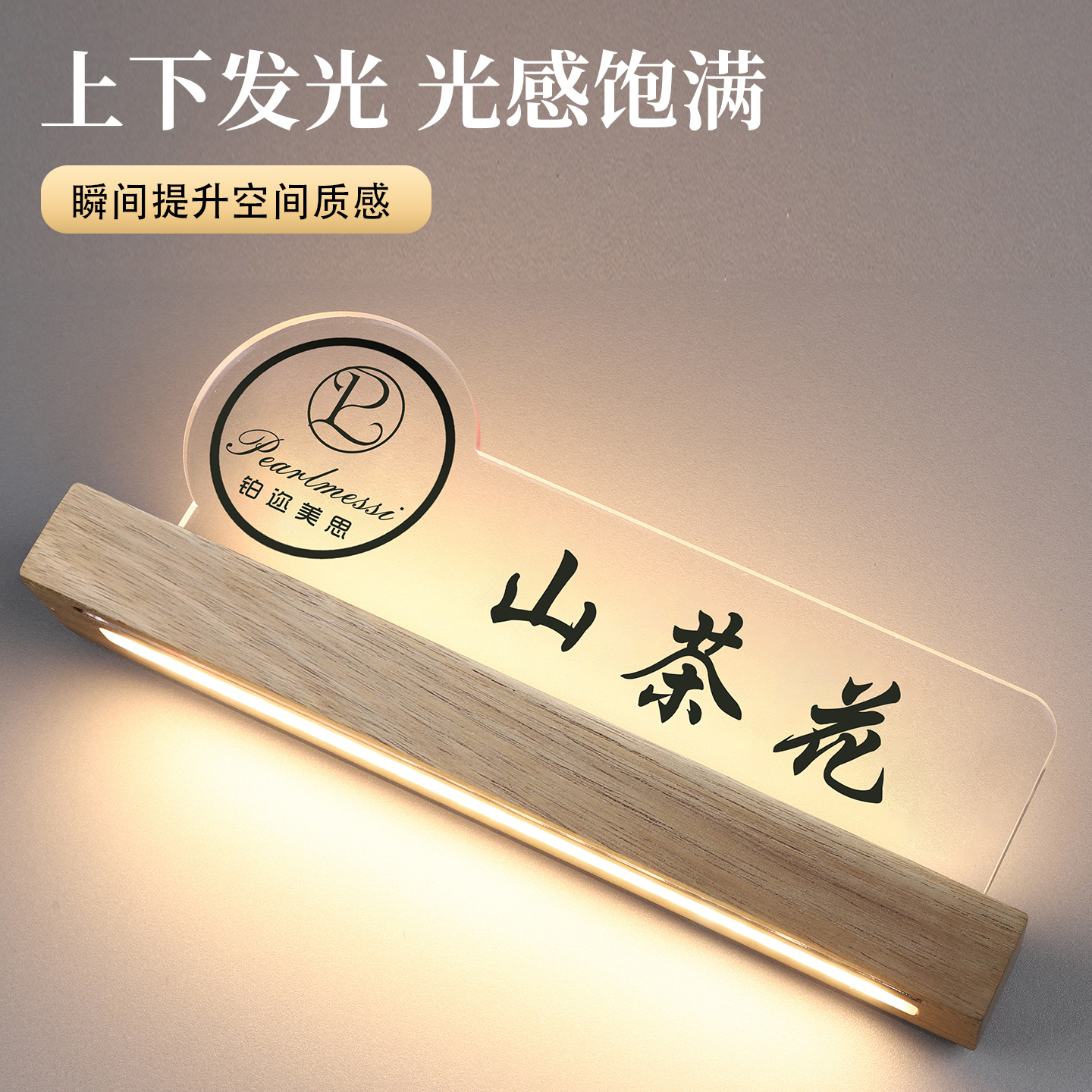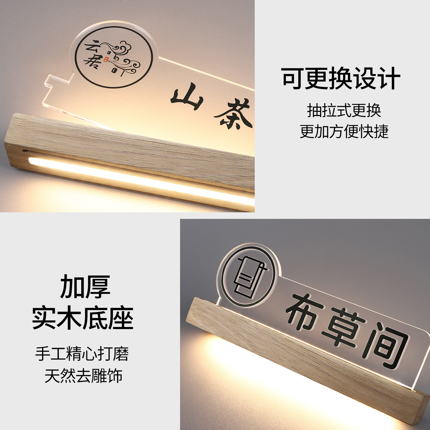轻奢酒店发光门牌定制实木民宿宾馆房间号码牌饭店茶楼茶室包间包厢牌高级感美容院led带灯充电式创意标识牌