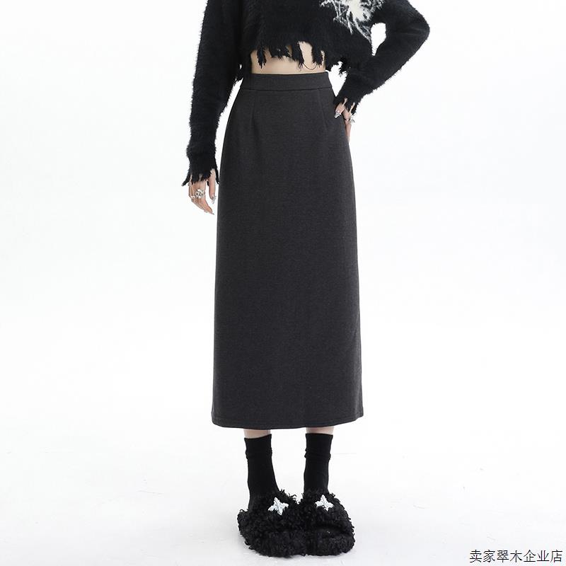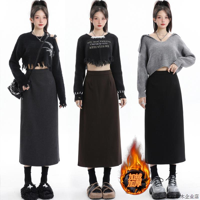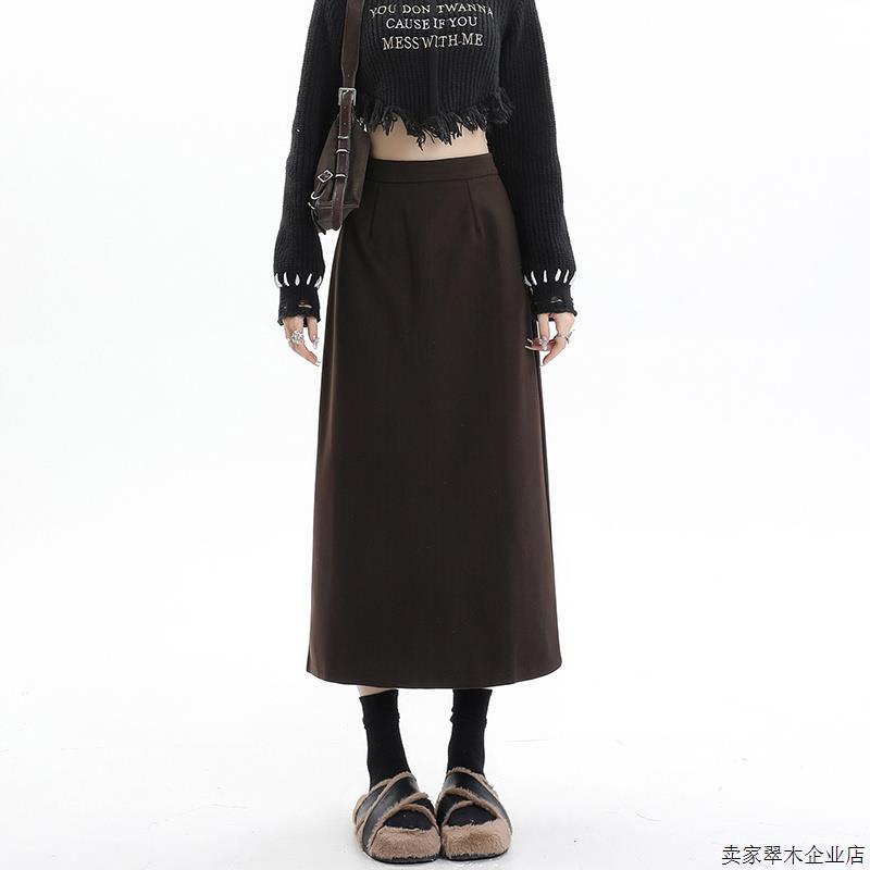 咖色毛呢开叉包臀裙女秋冬2025新款气质a字半身裙过膝高腰中长裙