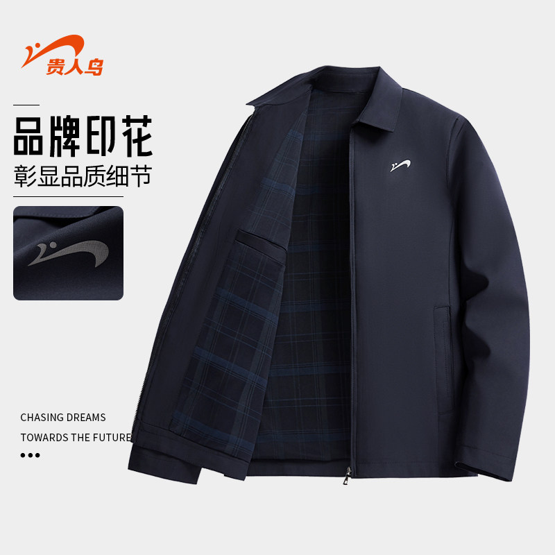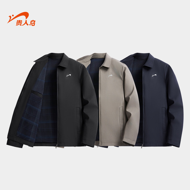 贵人鸟行政夹克男款2026年春秋季中年爸爸装商务夹克男士翻领外套