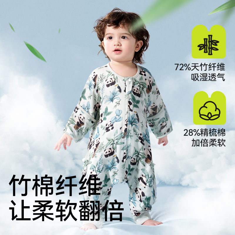 棉奇熊婴儿睡袋夏季薄款纱布宝宝夏天分腿防踢被神器儿童四季通用