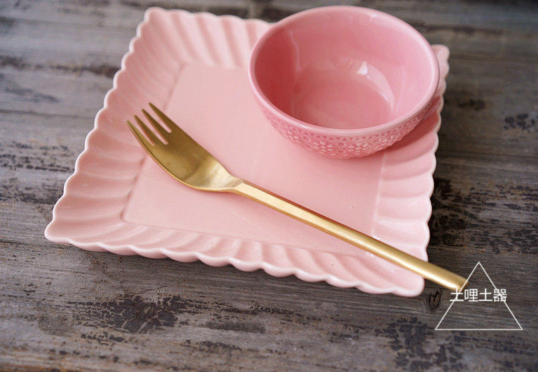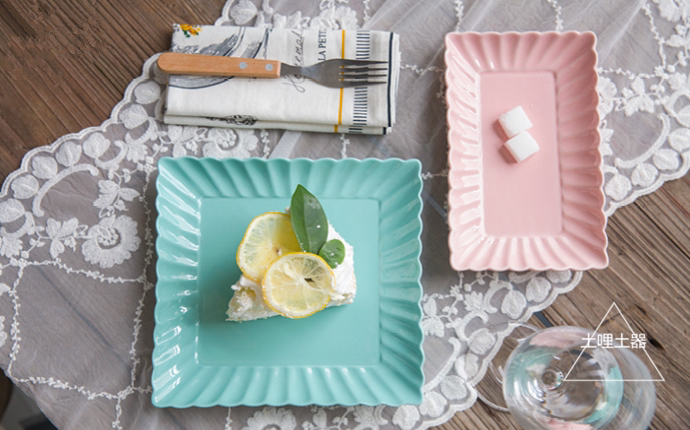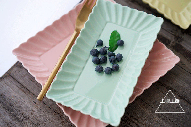 特惠款 日式糖果色花瓣方形陶瓷盘 甜点盘 家用菜盘 零食盘果盘