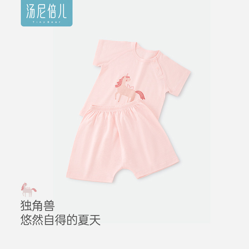 汤尼倍儿竹节棉婴儿短袖短裤套装夏纯棉薄款家居服女宝宝分体衣服