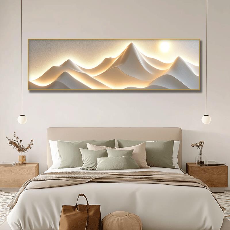 背靠金山卧室床头装饰画主卧挂画横幅宾馆现代简约房间背景墙壁画