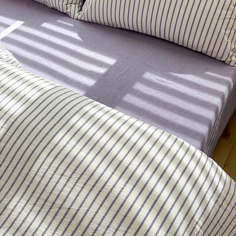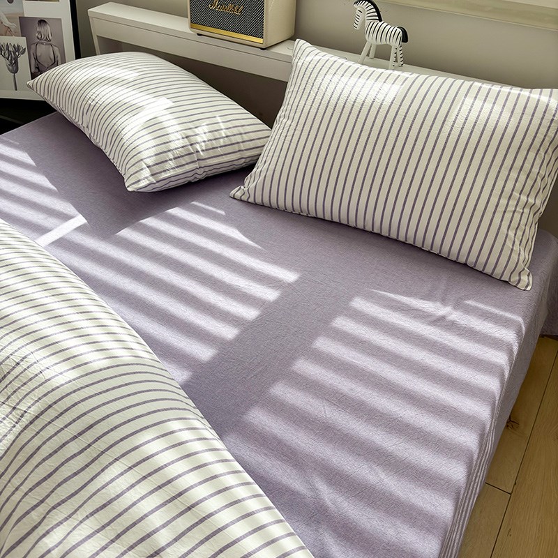 水洗棉紫条纹全棉纯色床单单件夏天学生宿舍被单枕套可配三四件套
