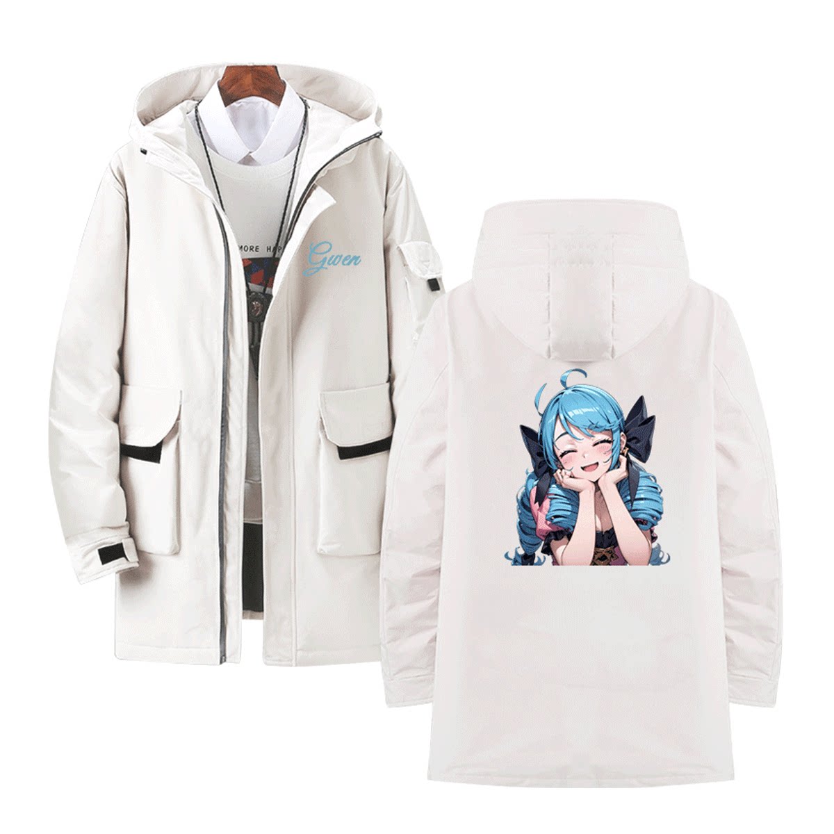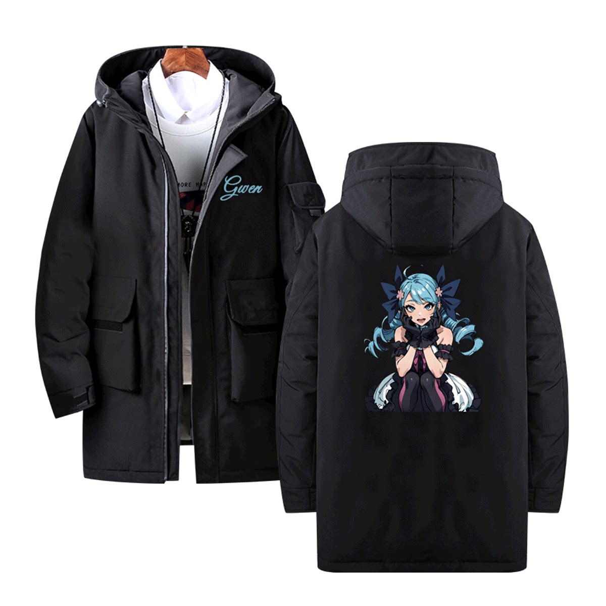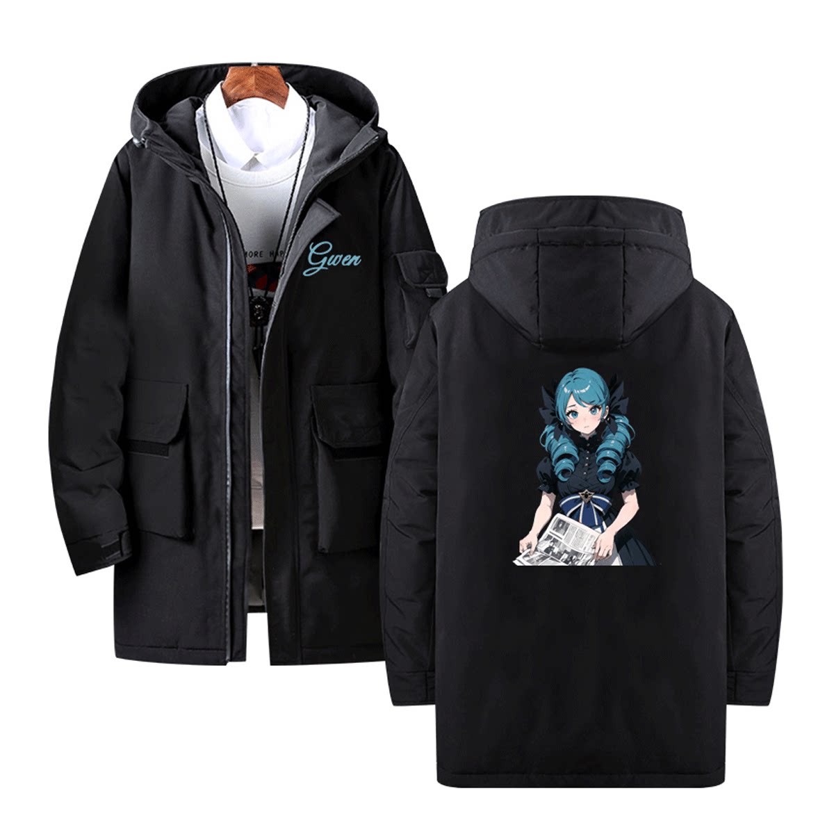 lol英雄联盟gwen游戏周边二次元男情侣时尚定制中长款连帽羽绒服