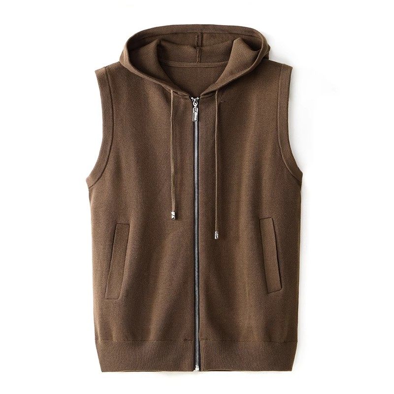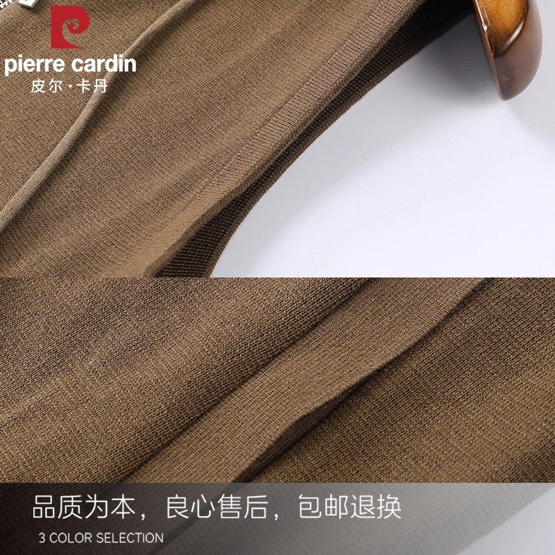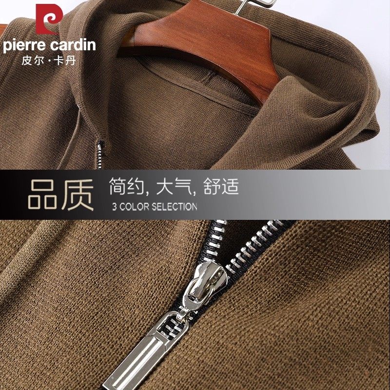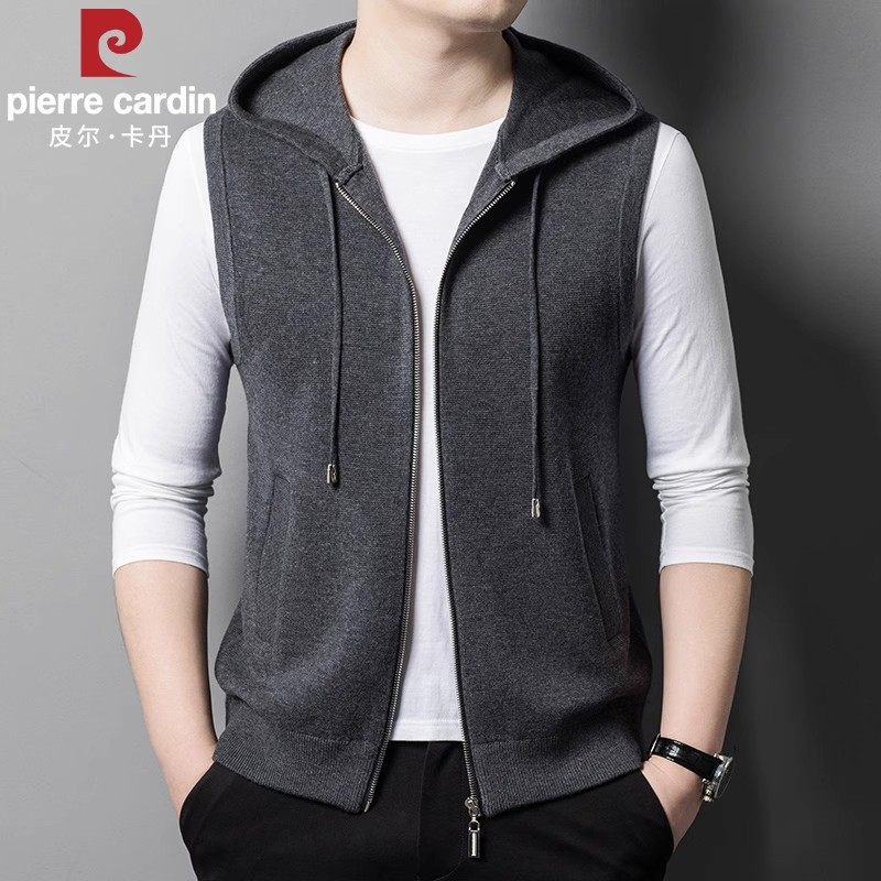 皮尔卡丹桑蚕丝+绵羊毛马甲男士外套开衫连帽背心针织坎肩夹克男
