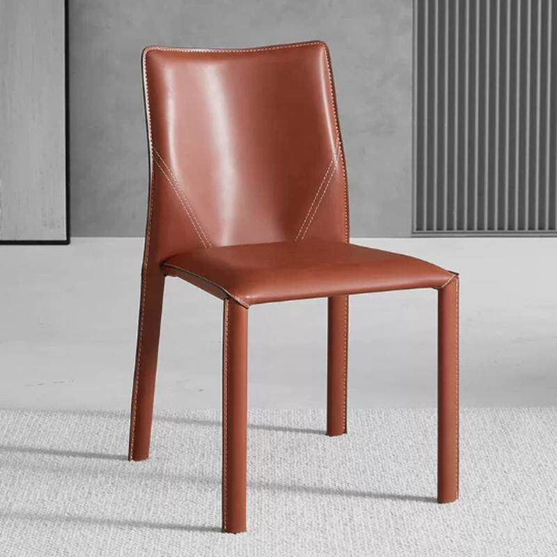 马鞍皮意餐椅式极简家用餐桌椅工业风高级感设计师样板间靠背椅子