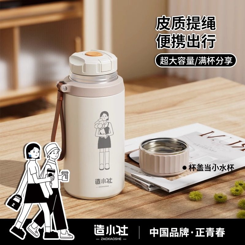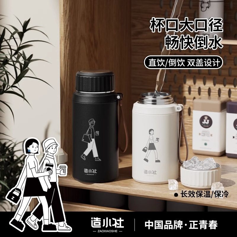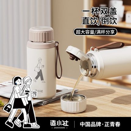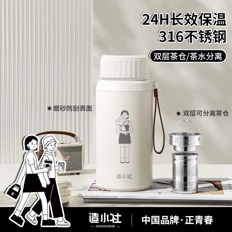 造小社保温杯316不锈钢女大容量1L运动水壶男茶水分离泡茶杯印字